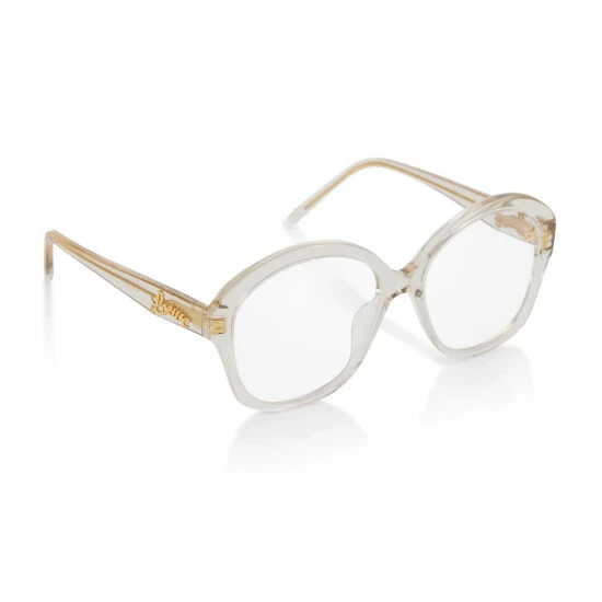 Embrace Loewe’s characterful vision with these round glasses. Appearing with a curved, transparent acetate frame, this style has exposed internal wiring, logo plaque detailing to the curved arms, and arrives in a protective case.