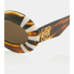 These round sunglasses are the latest addition to Loewe’s statement eyewear family. They have heavy tortoiseshell-effect frames that are detailed with white stripes and feature the anagram logo at the arms.