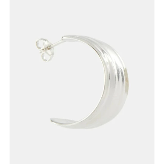 For contemporary jewelry with a twist, look to LOEWE’s take on the demi-hoop earrings. Cast in sterling silver, they feature slightly raised middle bands. Pierce them on next to other styles for a stacked look.