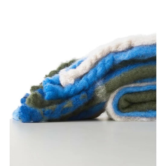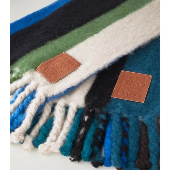 Made from a striped ultra-soft mohair and wool blend, this blanket from Loewe has fringed trims and a leather Anagram logo appliqué.