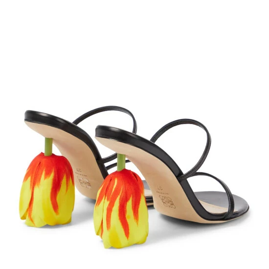Jonathan Anderson’s vision for Loewe this season blends modern silhouettes with a tinge of surrealism. These sandals are made from leather and sit on lopsided tulip-shaped heels.