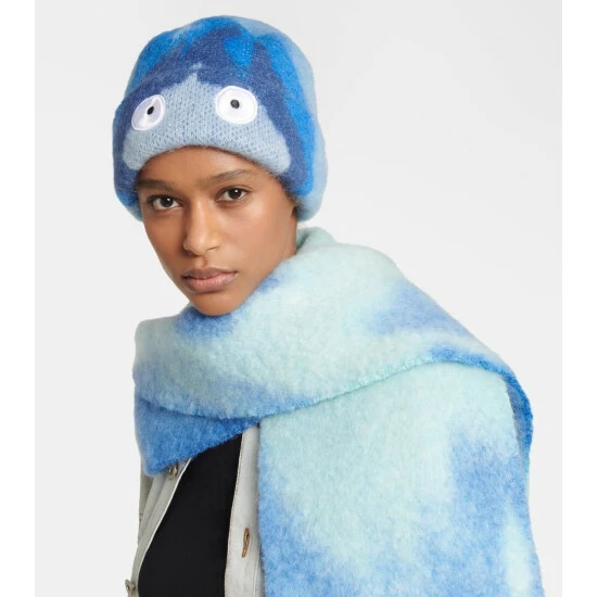 A story from one of cinema’s greatest enchanters, the film Howl’s Moving Castle is skillfully brought to life in a final capsule from Loewe and Studio Ghibli. This reversible wool and mohair beanie has a fuzzy finish, and is embroidered with the eyes of the fire demon Calcifer.