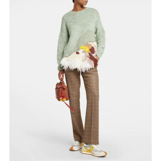 Loewe and Studio Ghibli collaborate once again with a new capsule that celebrates craft and imagination. The featured film, Howl’s Moving Castle, is full of unforgettable characters like the dog Heen – whose fuzzy, fringed likeness is embroidered to the hem of this sweater.