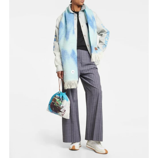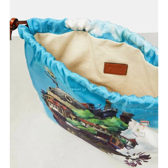 A tribute to the film Howl’s Moving Castle, the latest collaboration between Loewe and Studio Ghibli celebrates a shared love of craft and imagination. This drawstring pouch secures with signature knotted leather straps and is made from canvas with an illustration of Wizard Howl’s castle.