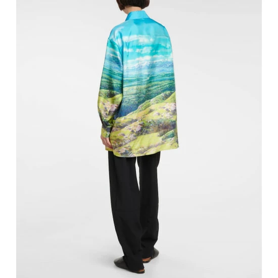 A tribute to the film Howl’s Moving Castle, the latest collaboration between Loewe and Studio Ghibli celebrates a shared love of craft and imagination. This oversized shirt is made from silk twill and printed all over with an image of beloved characters Sophie and Calcifer.
