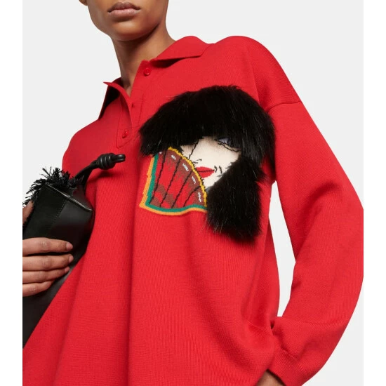 Loewe and Studio Ghibli collaborate once again with a new capsule that celebrates craft and imagination. The featured film, Howl’s Moving Castle, is full of unforgettable characters like the Witch of the Waste, whose likeness – including a fluffy hat and muff – is appliqued to this wool-blend polo sweater.